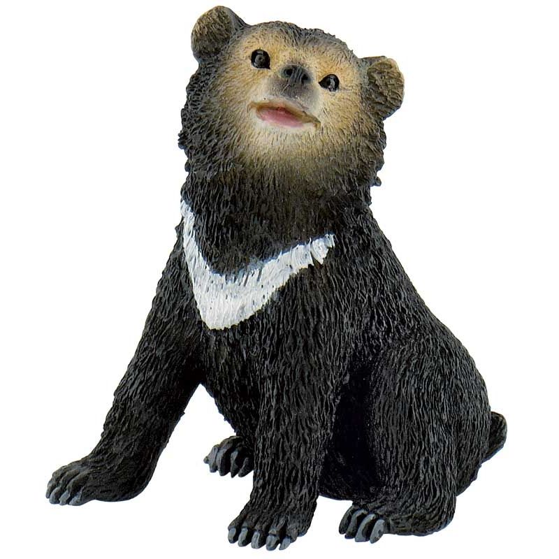 The ruffed bear, also known as the moon bear because of its striking white, crescent-shaped fur colouring on its chest, is found in large parts of Asia. It prefers forests as its habitat, but can be found in temperate deciduous forests as well as tropical rainforests. The diurnal and nocturnal animals are omnivores, but mostly feed on plants. This collar bear cub from Bullyland measures approx. 2.5 cm and is hand-painted in great detail. Awarded the spiel gut seal of approval. Age: from 3 years