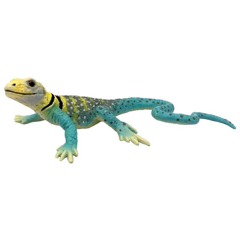 The collared iguana, which owes its name to the striking markings on its neck, is native to rocky arid regions in Mexico and the south-west of the USA. Collared iguanas are very sociable members of their species and are mostly diurnal. In winter, they hibernate for two to three months. The males are often more colourful and strikingly patterned than the females. The male collared iguana from Bullyland measures approx. 12 cm in length and is hand-painted in great detail. Age: from 3 years.