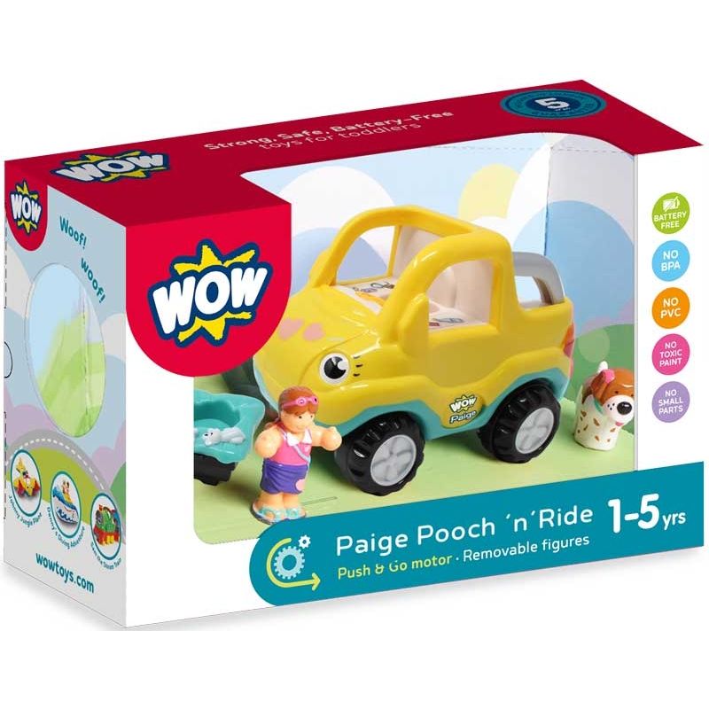 Paige Pooch 'n' Ride Car with cute pet dog Animal Friend that fits snuggly into her dog basket. Paige loves adventure day trips to who knows where! Her sturdy and cute design means your toddler can take her anywhere too.
